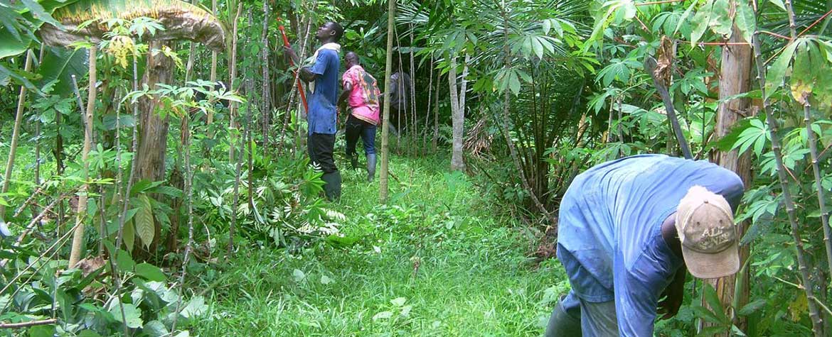 Kleinbauern in Ghana: Auch die Umsetzung der Agroforstwirtschaft im Anbau von bio-fairem Palmöl hat ECOTOP beratend begleitet.
