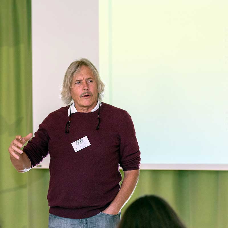 Joachim Milz, Direktor der Stiftung ECOTOP, erläutert das Prinzip der dynamischen Agroforstwirtschaft in einem Workshop bei Rapunzel Naturkost.